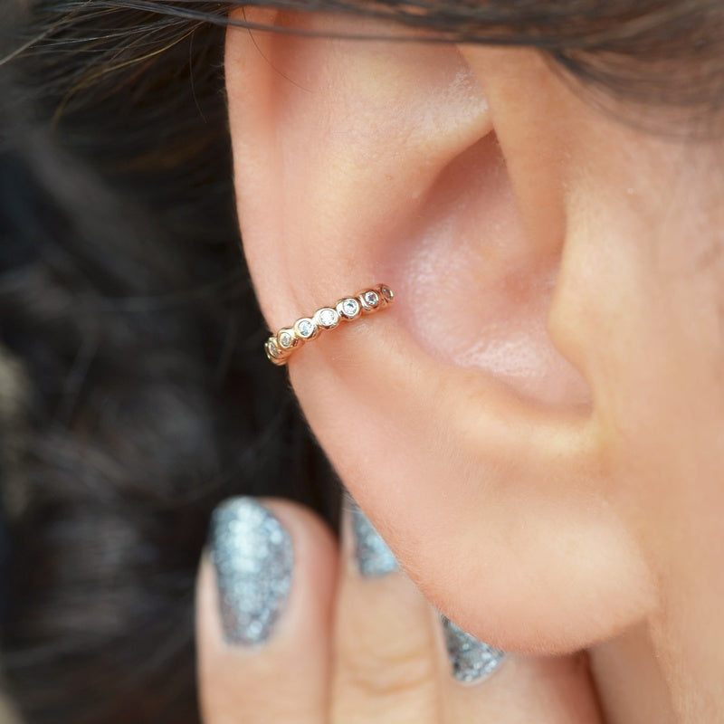 Compression Cartilage Earring Mini Thin Stone Ear Cuff Gold Silver
