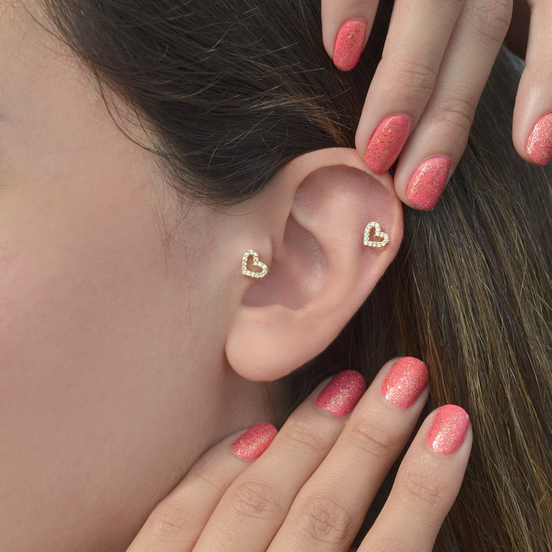 Heart Earrings Heart Piercing,Stud Earrings Tragus , Love Earrings Helix Piercing, and Cartilage Gold Silver