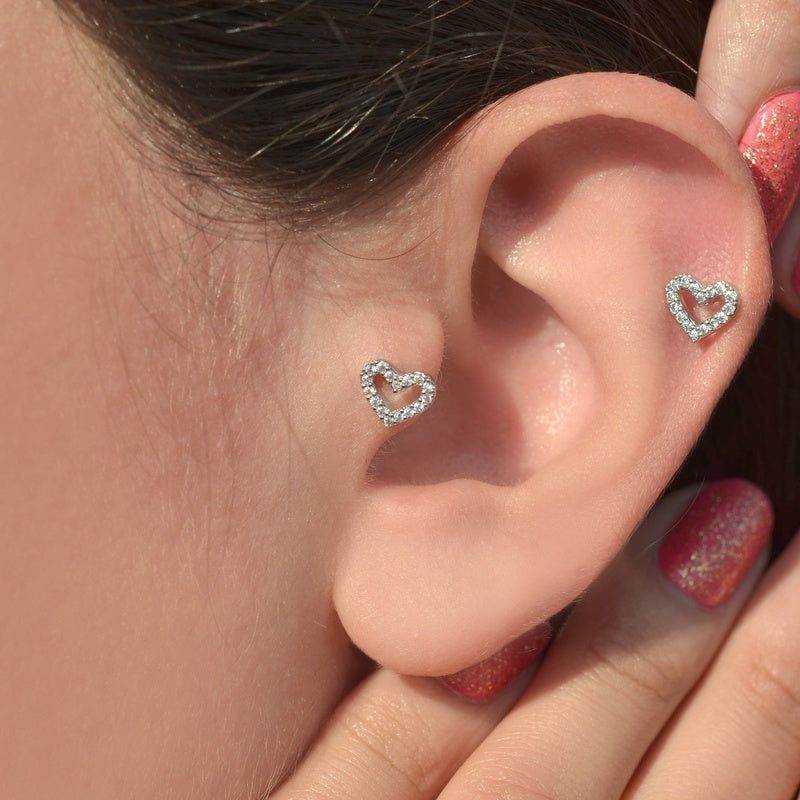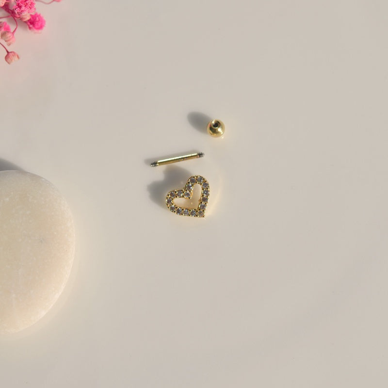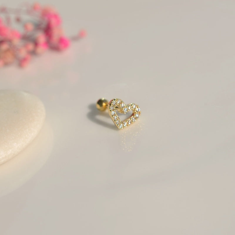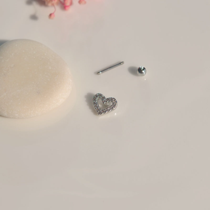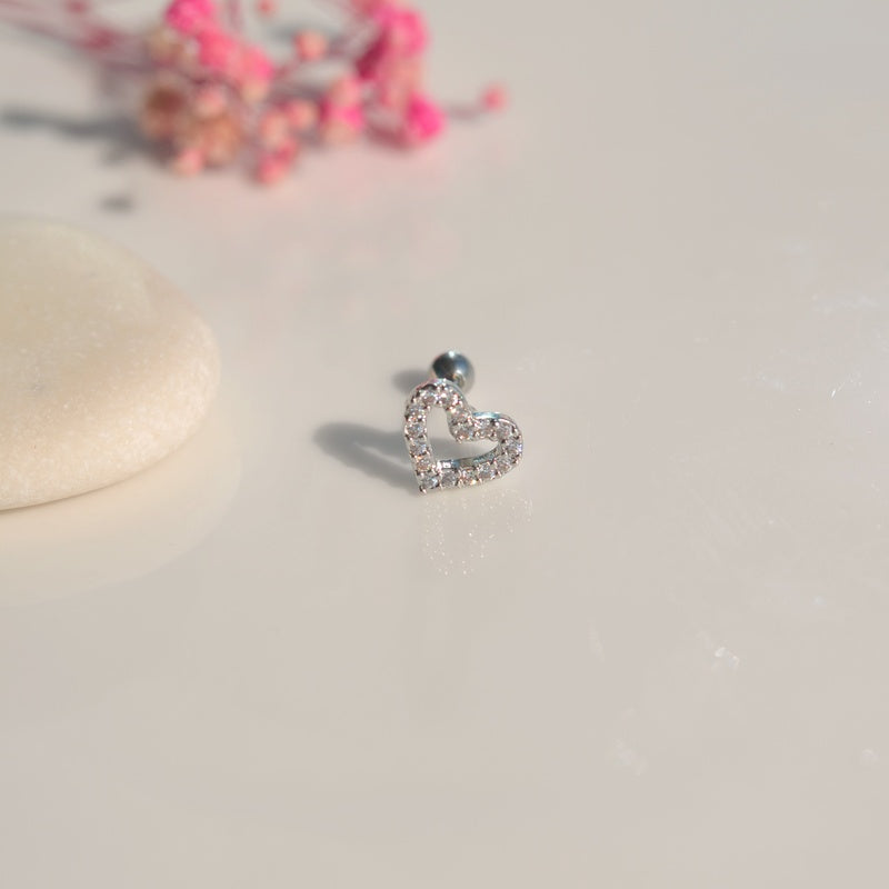 Enhance your style with our elegant Heart Piercing, designed for Tragus, Helix, and Cartilage. Made from high-quality surgical steel and adorned with sparkling zircon stones, this piece combines durability with a touch of glamour.