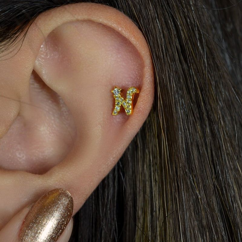 Letter Earrings Stud Letter Earrings Piercing for Helix, Tragus, Lobe, and Cartilage Gold Silver Gift For Her