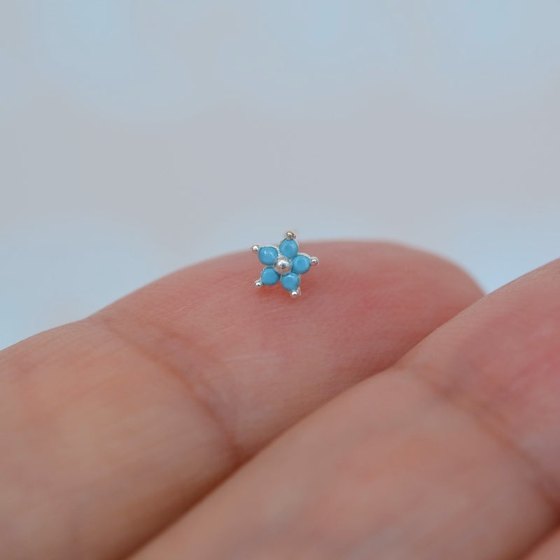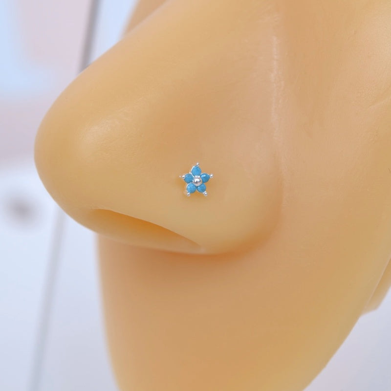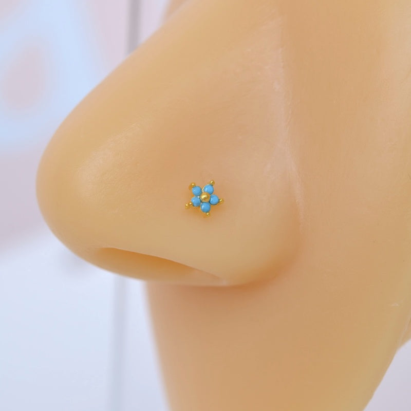 925 Sterling Silver, Turquoise, Lotus Flower Nose Piercing, Nose Stud, Tiny Nose Studs, Nose Pin, Nose Pins, Gift for Her