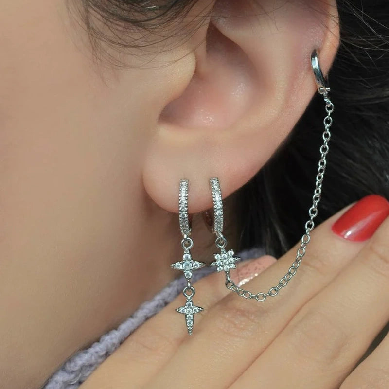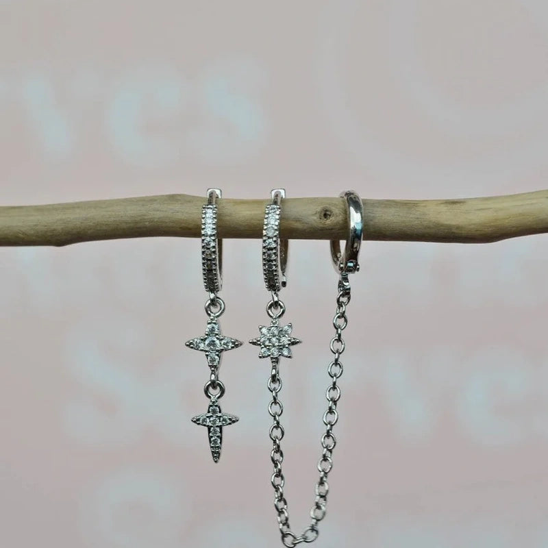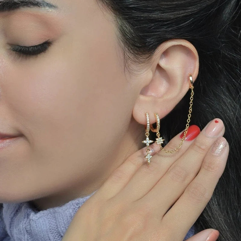 Elevate your style with our North Star Set of 3 Earrings. Crafted from original rhodium-plated xuping, these earrings feature sparkling zircon stones and are available in both gold and silver. The set includes three single earrings with inner diameters of 8 mm, 10 mm, and 11 mm, perfect for creating a celestial-themed look. Designed for durability, these earrings resist color change and fading, making them ideal for everyday wear.