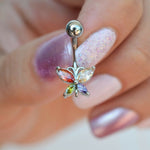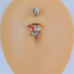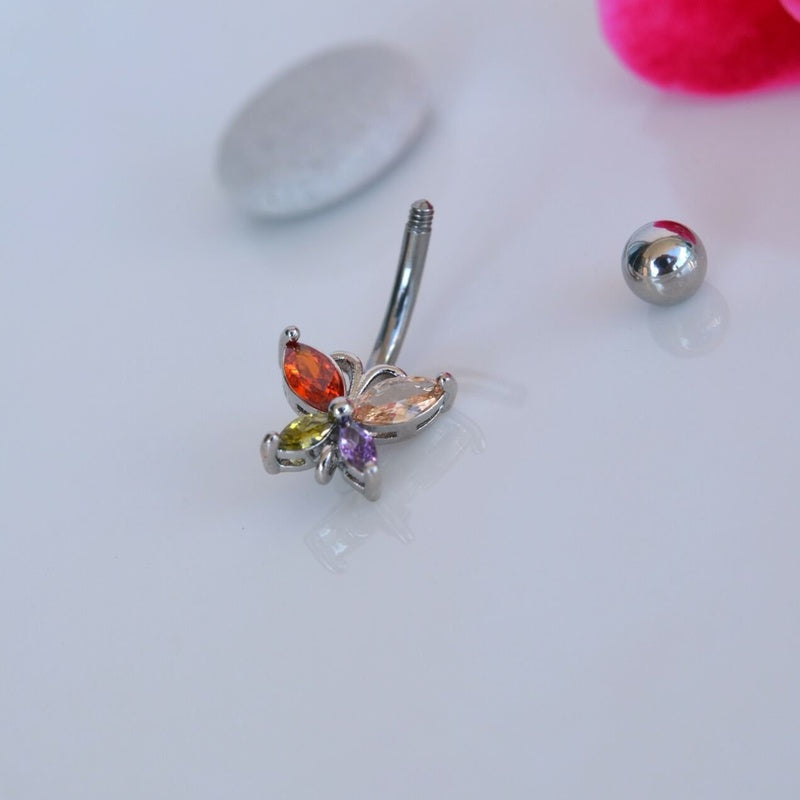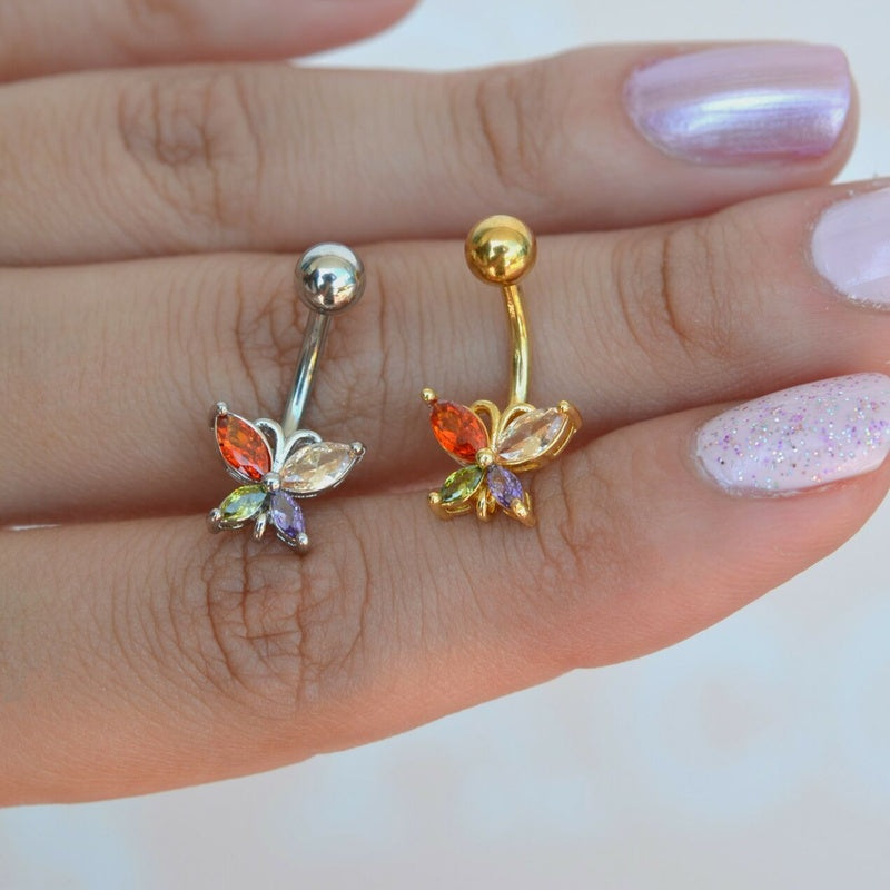Steel Butterfly Belly Bar, Belly Piercing, Colorful Belly, Navel Piercing, Navel Bar, Birthstone Piercing Silver Color