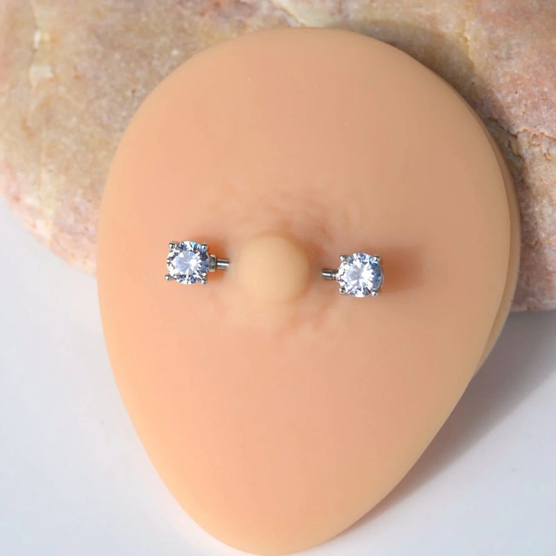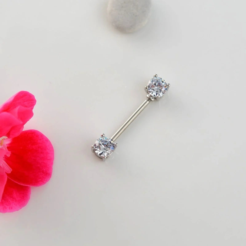 16 mm Nipple Piercing with Zircon Stones Nipple Piercing Nipple Barbells Nipple Bar Body Piercing Bridge Barbells Body Jewelry Silver