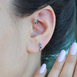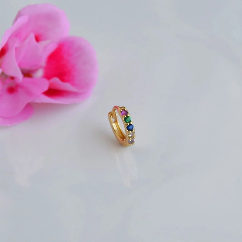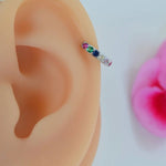 8 mm Multicolor Helix Piercing for Tragus Cartilage Hoop Ring Piercing and Lobe with Zircon Stones - Gold And Silver Colour