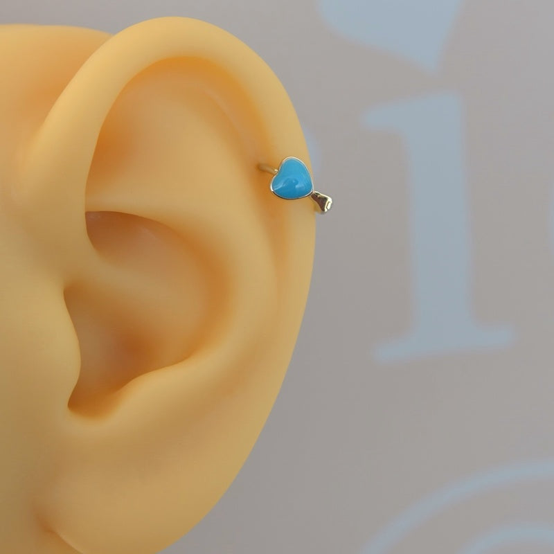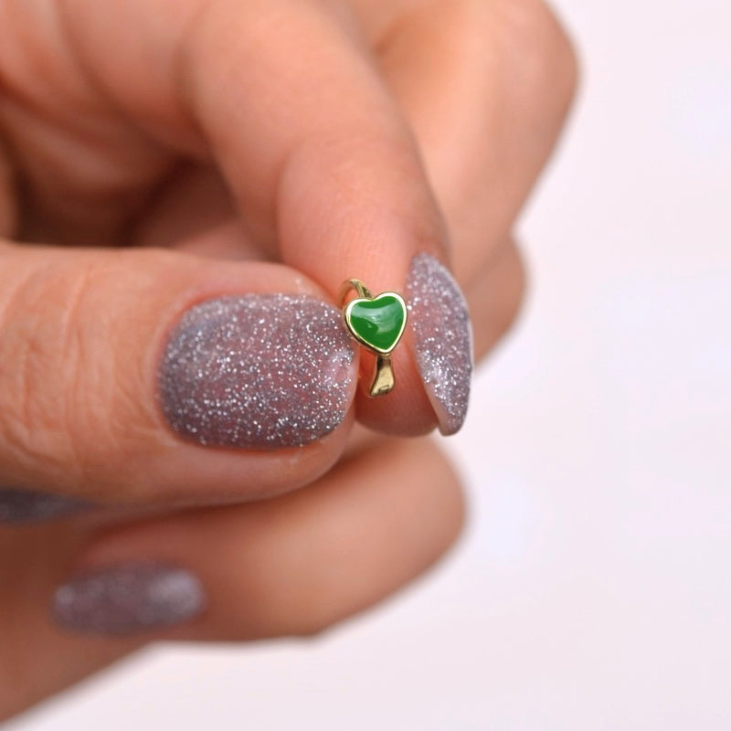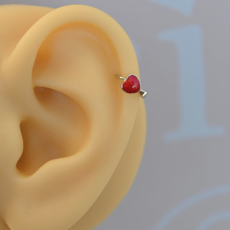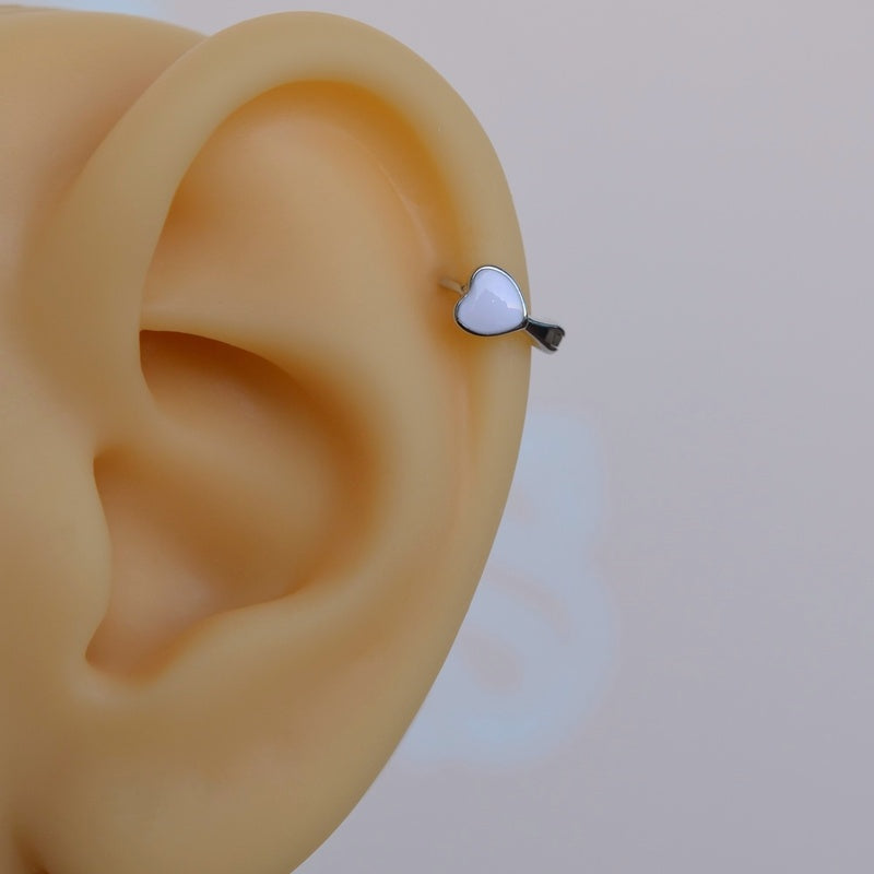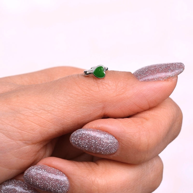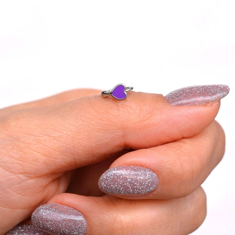 Heart Ring Piercing Black Blue Green Pink Purple Red White Earring Single