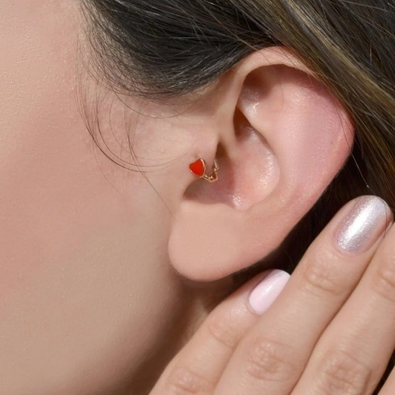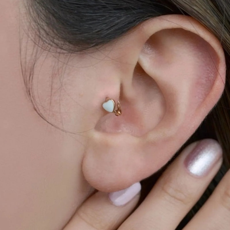Enhance your piercing collection with our Colourful Heart Ring Tragus Piercing. Made from original rhodium-plated xuping, also known as medical gold, this tiny yet charming piece is designed for versatility and elegance.