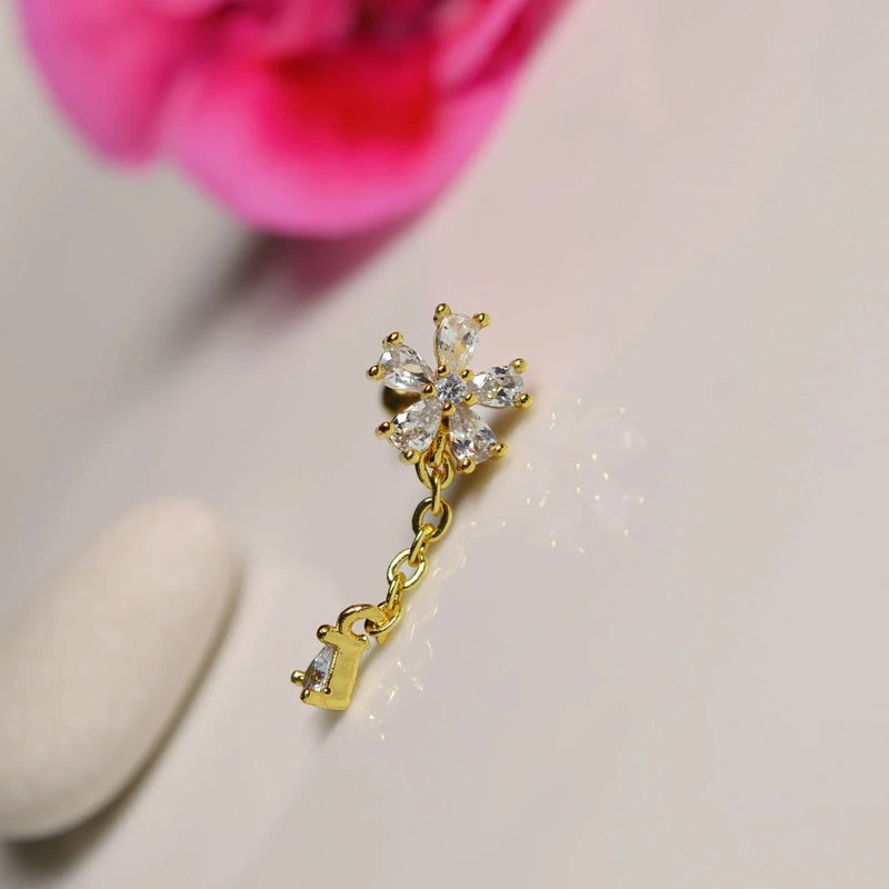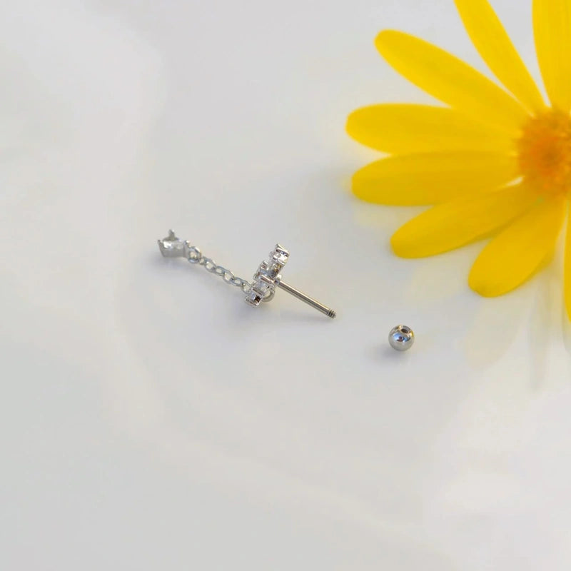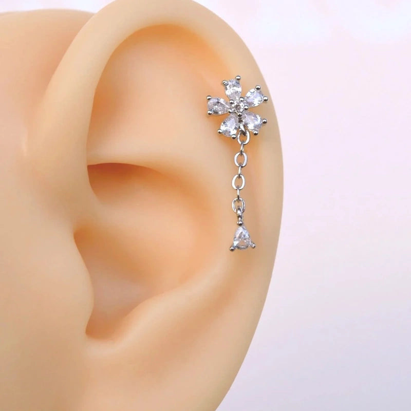 Chain Wobbly Flower Piercing for Helix, Cartilage, and Lobe - Silver Colour