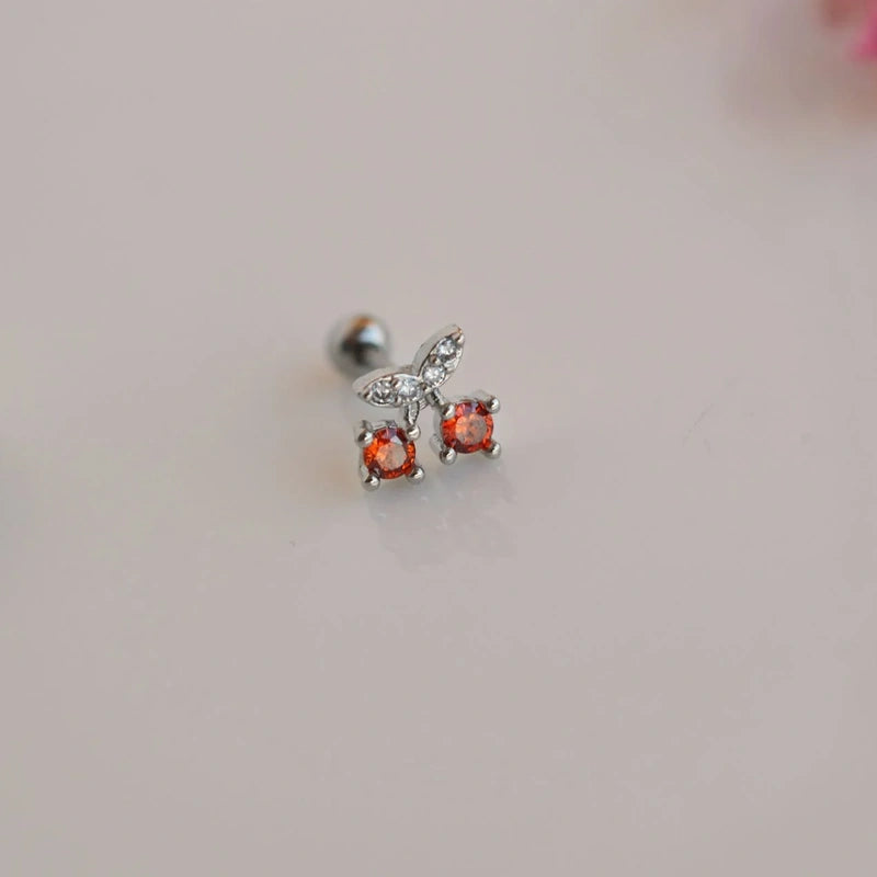 Add a sweet touch to your piercing collection with our Cherry Tragus Piercing, perfect for helix, tragus, and cartilage piercings. Made from rhodium-plated xuping and featuring zircon stones, this elegant piece is available in gold and silver finishes