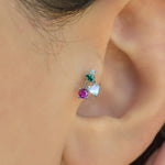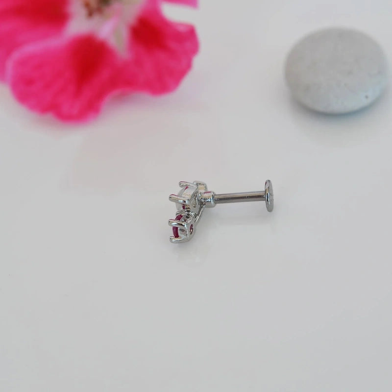 Flat Back Steel Cherry Tragus Piercing for Helix, Lobe, and Cartilage - Gold and Silver Colour