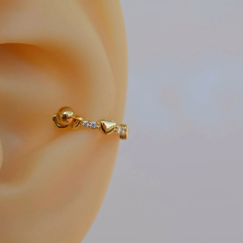 Heart Earring, Helix Piercing Ring Earrings Stone Conch Piercing Gold and Silver Colour Gift For Her