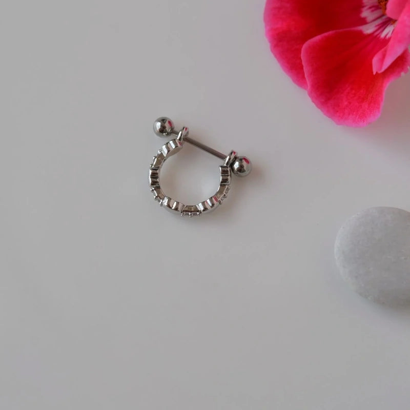 Description: Elevate your style with our Heart Helix Piercing Ring, perfect for conch, helix, lobe, and cartilage piercings. Crafted from original rhodium, also known as medical gold, this piercing ensures high durability and minimal color change. The ring features an outer diameter of 10 mm and an inner diameter of 8 mm, with a bar length of 10 mm. Adorned with sparkling zircon stones, it offers a refined touch to any look. This single piercing is resistant to pool and sea water. For longevity, avoid contact with chemicals.