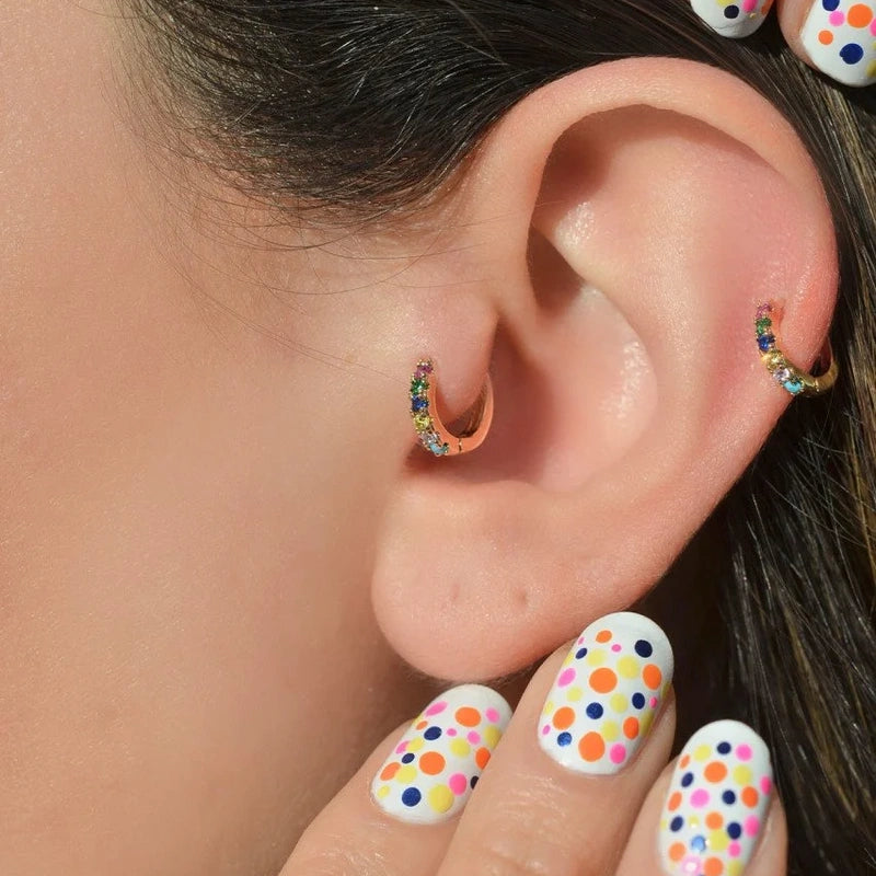 Multicoloured Ring Tragus Piercing Helix Cartilage Earring Gold Colour