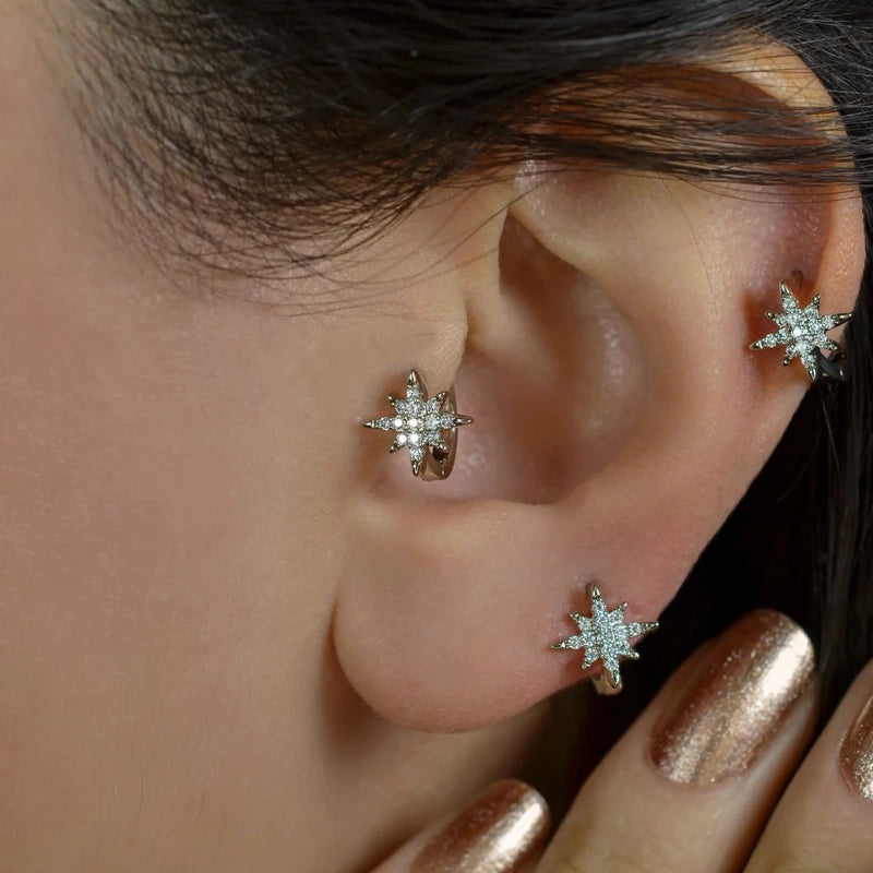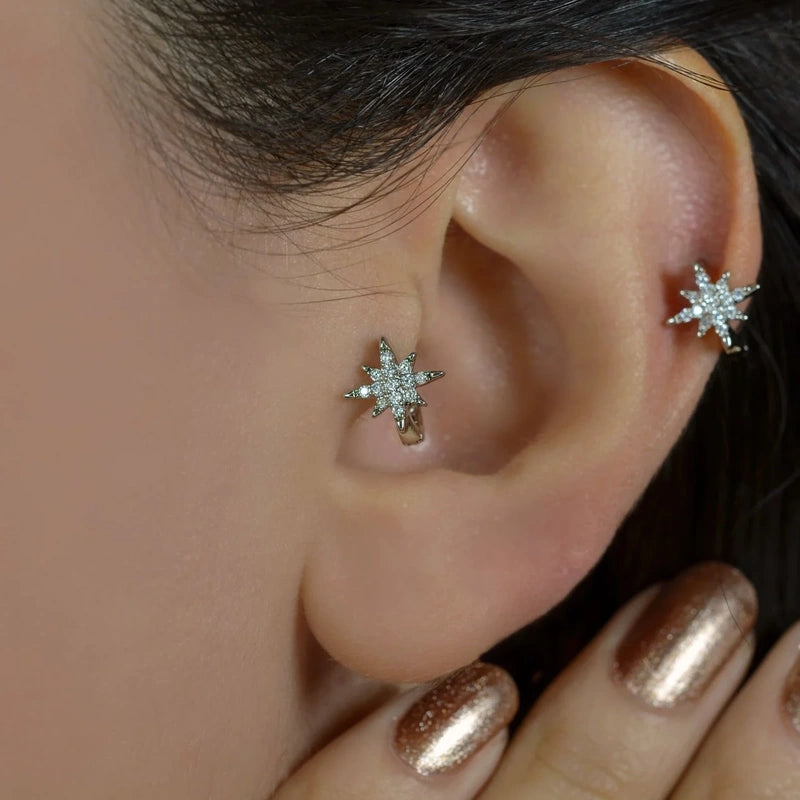 North Star Earring Ring Tragus Piercing Helix Cartilage Earrings Upper Lobe Hoop Earrings Gift For Her
