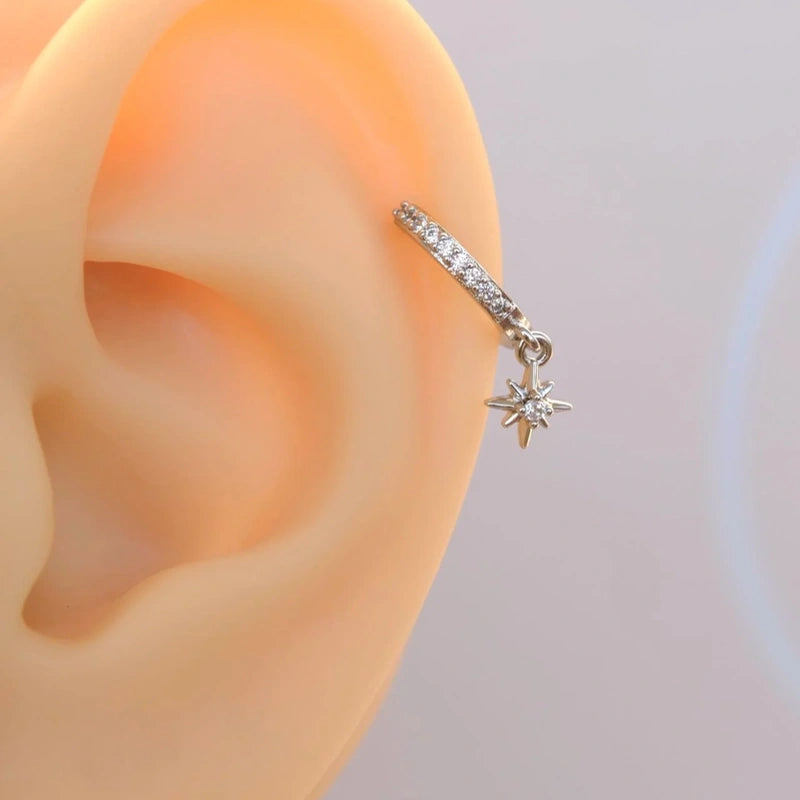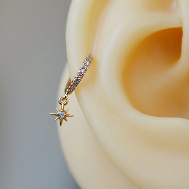 Polar Star Earring Star Earring Ring Earring Dangle Earrings Tragus Piercing Helix Cartilage Earrings Gold Silver Gift For Her