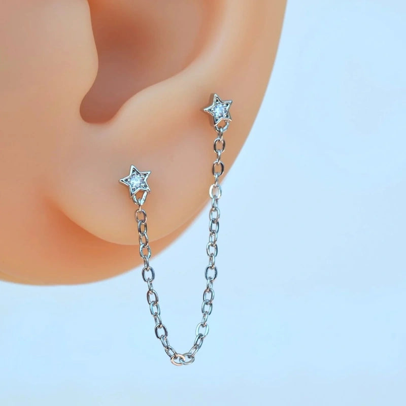 Star Chain Wobbly Piercing for Helix, Cartilage, and Lobe with Silver Colour With Stones