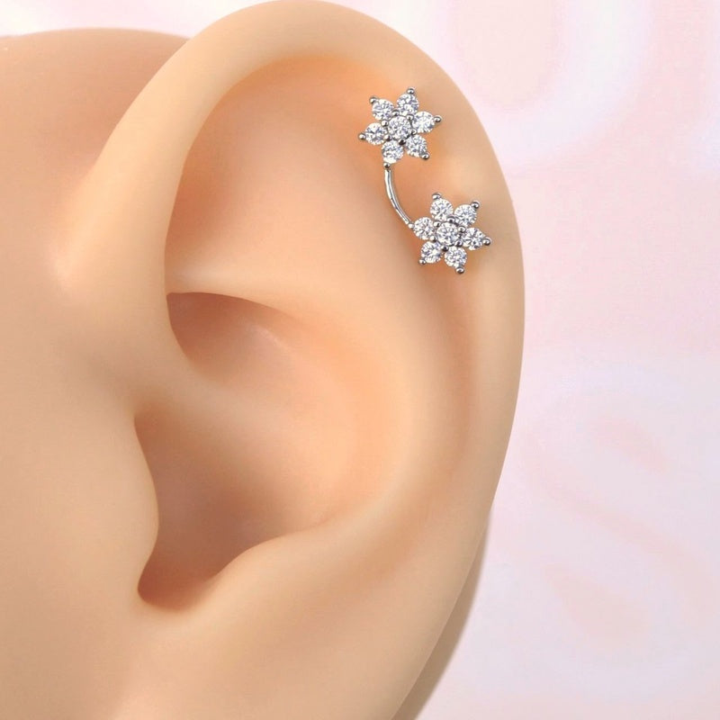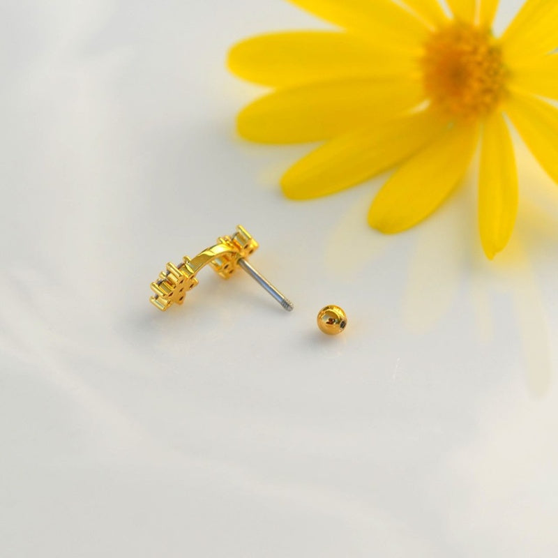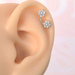 Twin Flower Piercing Tragus Piercing Stud Earring Ear Stud Mini Colorful Helix Cartilage Flower Studs Gift For Her Gold Silver