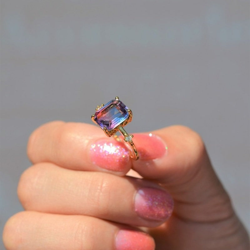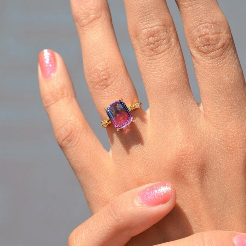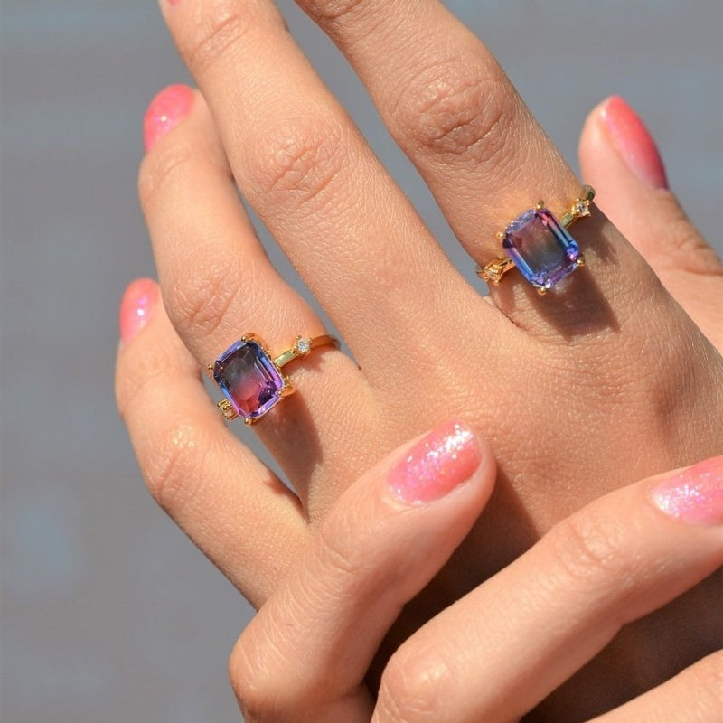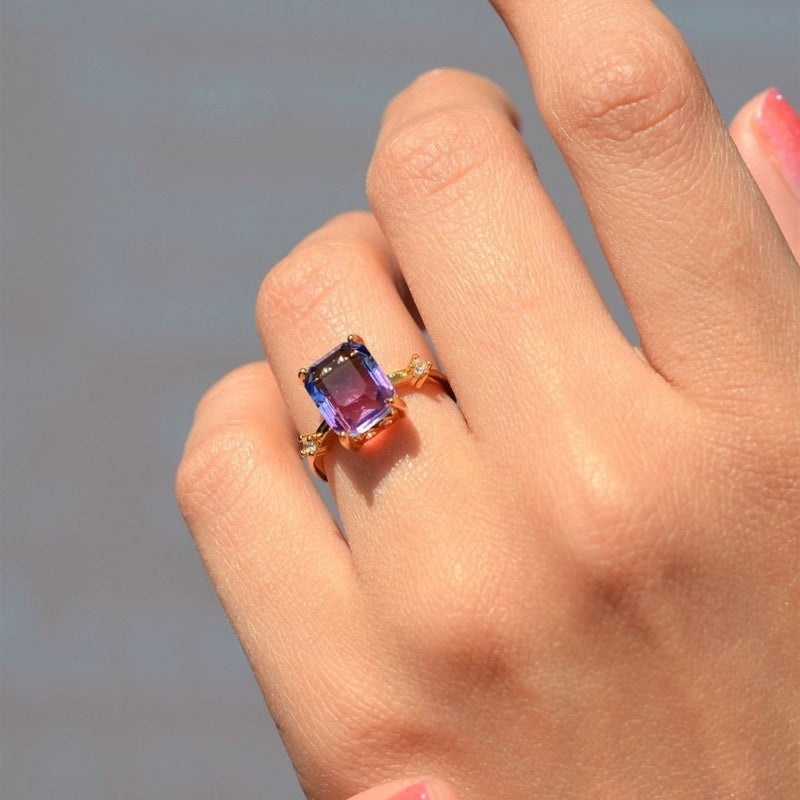 Adjustable Baguette Ring,Vintage Rings, Anniversary Ring,Statement Ring, Adjustable Ring, Rings for Women Pink, Purple