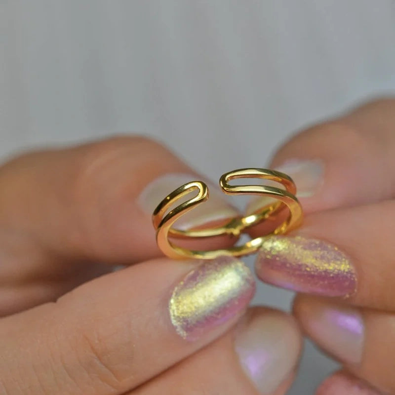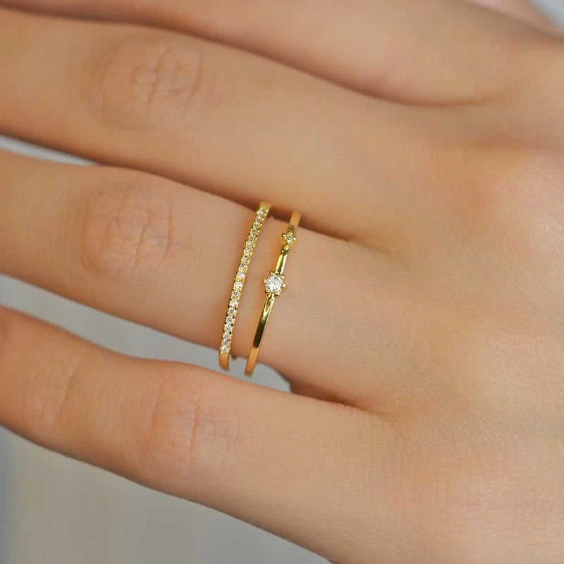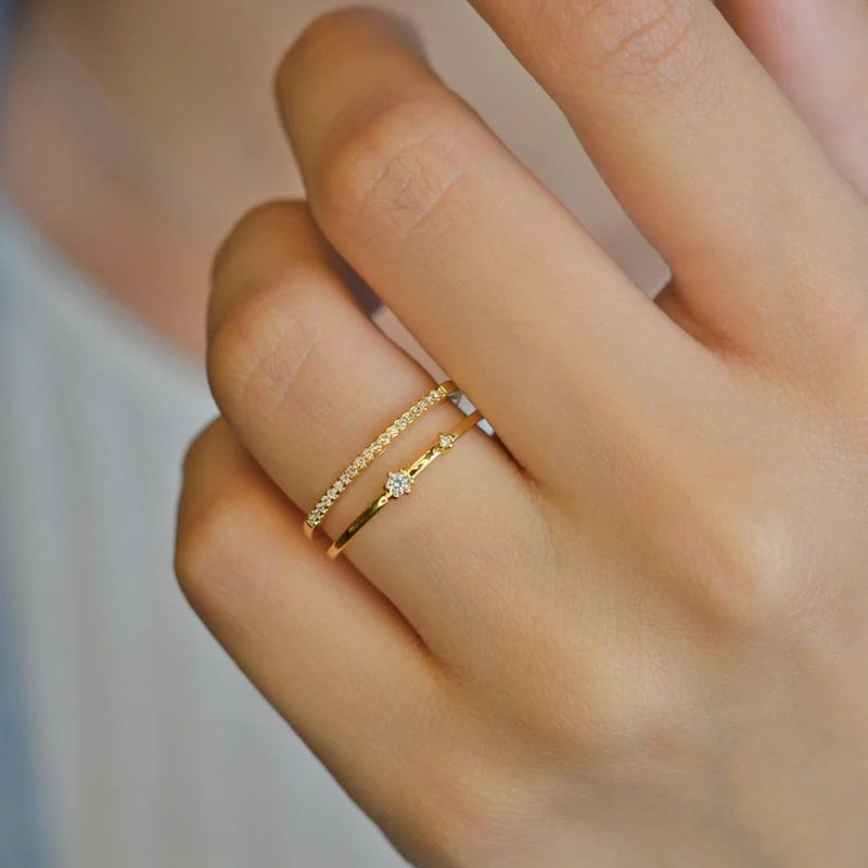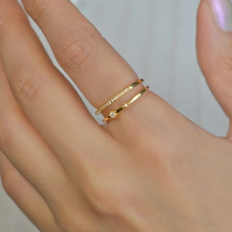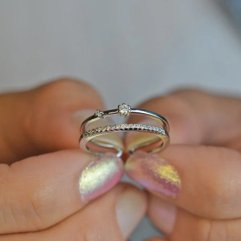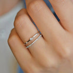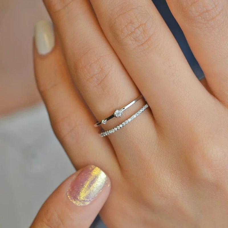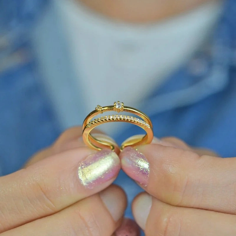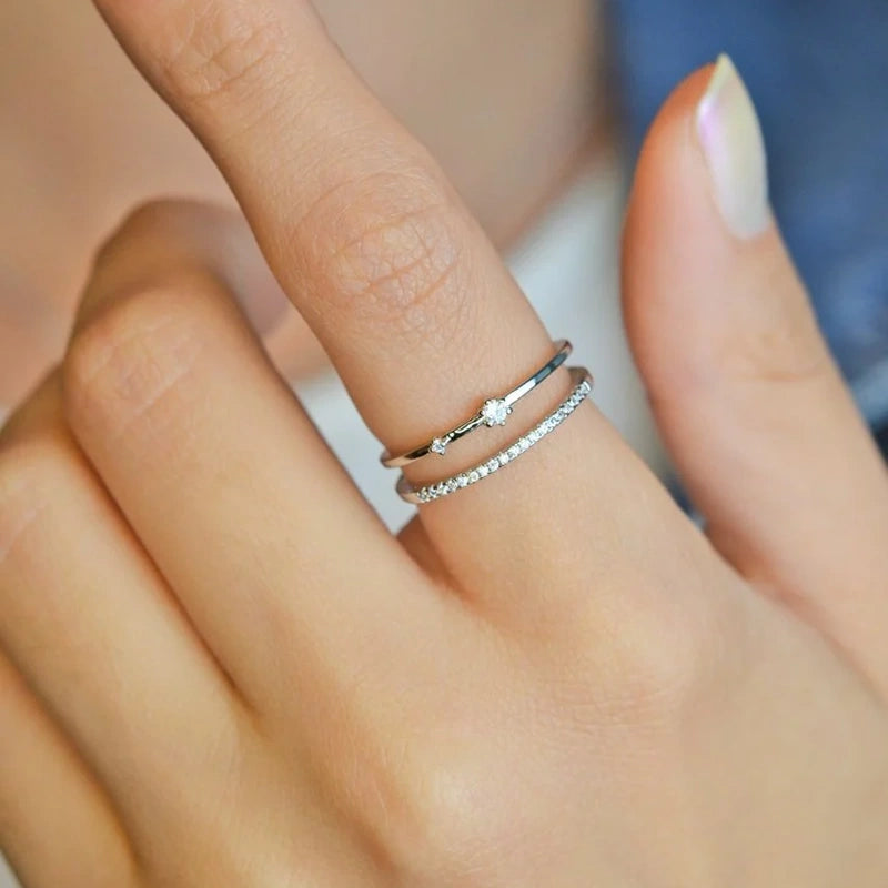 Elevate your jewelry collection with our Adjustable Double Row Thin Ring. Made from rhodium mixed with silver, also known as medical gold, this elegant ring features two rows of sparkling zircon stones. Its adjustable design ensures a perfect fit for any finger, offering both versatility and style. Ideal for daily wear, it is resistant to pool and sea water, maintaining its brilliant shine.